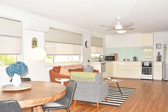 Fresh & modern throughout, 'Pearl by the Sea' enjoys open plan living with reverse cycle heating & cooling. The well equipped kitchen has a dishwasher, electric cooking & bbq for cooking up your catch of fish.