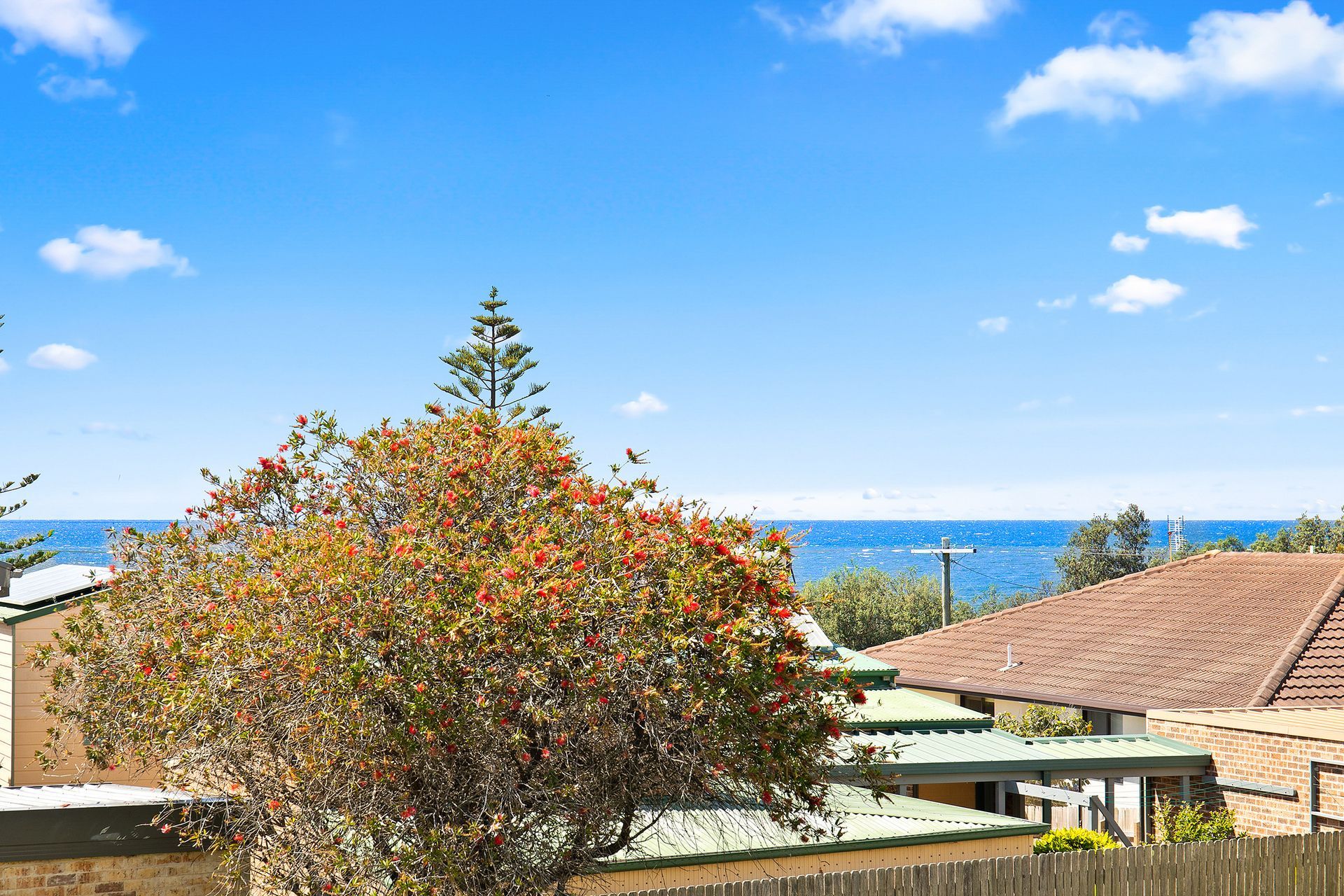 This retro cottage with a relaxed coastal décor offers simple 2 bedroom, pet friendly accommodation with ocean views just one street back from the beach front.